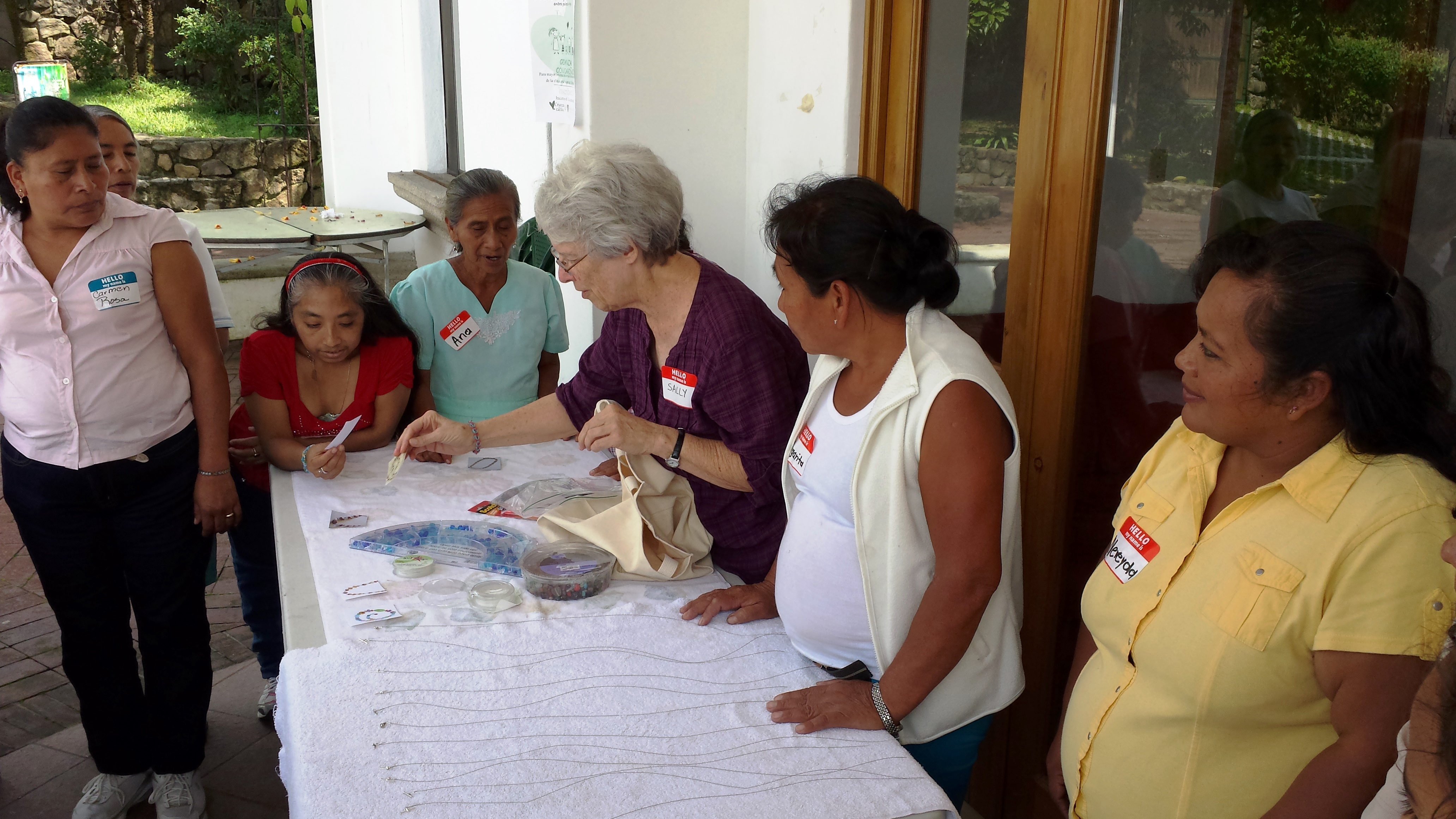 The people are warm and friendly in spite of it all and we did have time for a little fun as well. Many of the women were overjoyed to see Sally Thomas again, and she led a craft project where everyone made glass bead necklaces for themselves. Another memorable moment was when we all stood in a circle and danced the Hokey Pokey (taped in Spanish) with our Guatemalan friends. Ann Dorsett saw a woman whom she worked with 4 years ago to get a loan for her micro enterprise, and learned that her business is now thriving. And the consrruction crew got soaked on the way back from work because it began to pour and they were riding in the open back of a pickup truck. Thanks goodness there is a washer dryer where we are staying!
